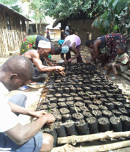 Beim neuen Projekt des Kindernetzwerk Sierra Leone e.V. geht es darum, abgeholzte Flächen in Sierra Leone wieder aufzuforsten und gegen die Erosion zu schützen, indem Obst- und Nussbäume, Cash Crops wie Kaffee, Kakao und Ölpalmen sowie verschiedene Waldbäume angepflanzt werden, die demnächst in neu errichteten Baumschulen gezüchtet werden. Dabei spielen auch die eben gegründeten Umwelt-Clubs an den benachbarten Schulen eine wichtige Rolle. Schülerinnen und Schüler sollen gemeinsam an ihren Schulen, in ihren Hausgärten und auf abgeholzten Flächen in der näheren Umgebung Baumsetzlinge pflanzen und auch pflegen. Für diese Einsätze brauchen sie einfache Werkzeuge und auch Essen und Getränke. Eure/Ihre Spende hilft den Umwelt-Clubs, das nötige Geld dafür aufzubringen!